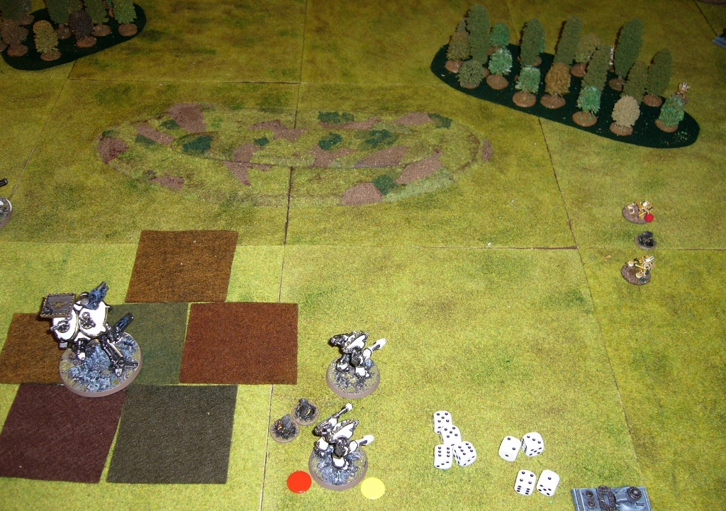 The Imperial Mechanised Infantry activate, and rally the offboard unit, coming on near the left flank objective, though this is their action for the turn.